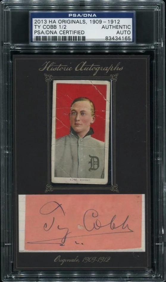 Finally, even if we had complete population reports, HA makes products for a profit and so the different prices they had to pay in the market for autographs and T206 cards in order to be able to include them in their products certainly may have skewed the results for purposes of determining relative populations. For instance, HA only included two Cobbs in their 2013 product. However, that doesn’t mean that Cobb T206 cards or his signature are at all rare — in fact, T206 Cobb cards his autograph are both extraordinarily abundant in the hobby. But, they are also among the most expensive given that massive demand for Cobb items still outpaces a strong supply.