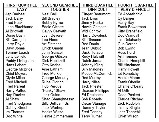 NOTE: In each quartile, players are listed in alphabetical order by last name, not in order of relative scarcity within quartiles. Prices will vary based on popularity of player and relative scarcity.