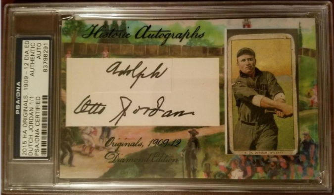 For example, 2015 HA Originals Diamond Edition Hans Lobert with a T206 is x/11, but with a T205 is x/6. Unfortunately, the population numbers are not verifiable on the PSA/DNA registry, which identifies the HA products only generically as “Trading Cards” without any reference to populations.